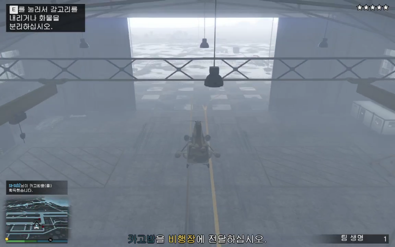 격납고에서 빠져나갈 때 헬기를 너무 높게 띄우면 천장에 닿으니