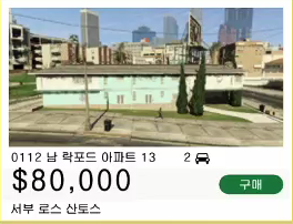 이상 GTA5 초년생이 부담 없이 저렴하게 구입할 수 있는 아파트였습니다.