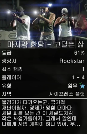 마지막 한탕 시리즈 마지막 임무인 고달픈 삶입니다.