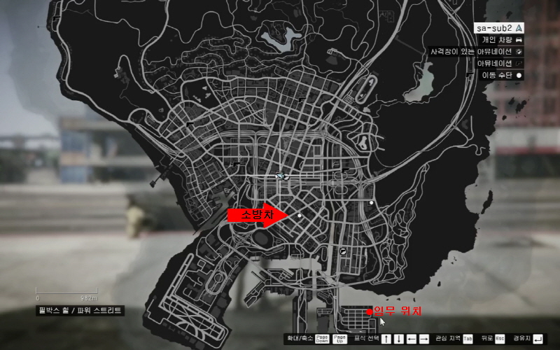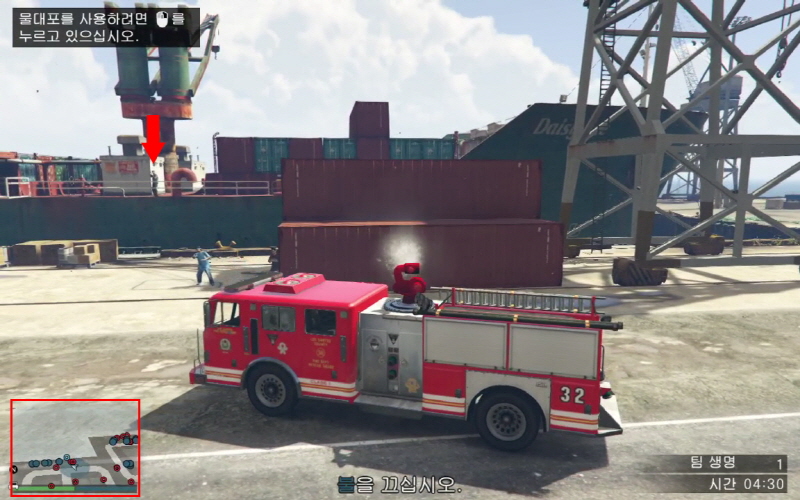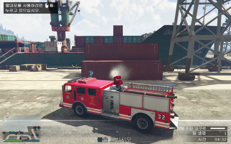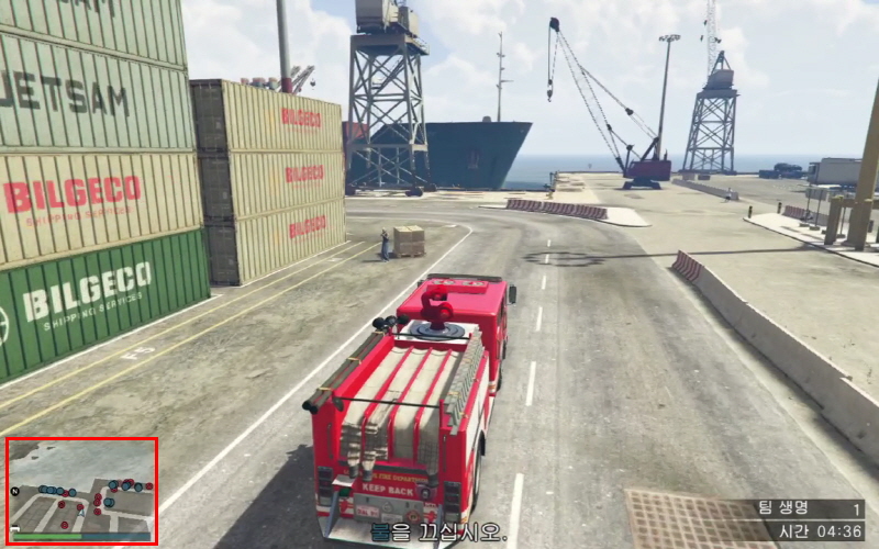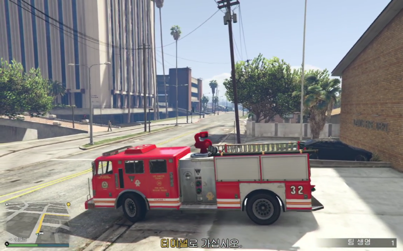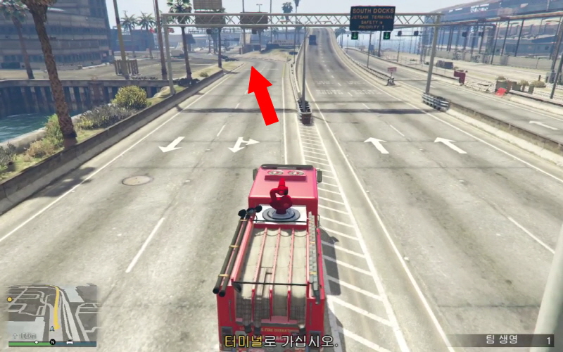 소방차를 타고 임무 위치인 남쪽 터미널로 가줍니다.